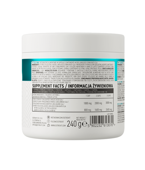 OstroVit CLA Slim Line - пищевая добавка высшего качества, содержащая конъюгированную линолевую кислоту (CLA). CLA очень положительно влияет на человеческий организм, проявляет активность, поддерживающую рост мышечной массы, и помогает сжигать излишки жировой ткани.