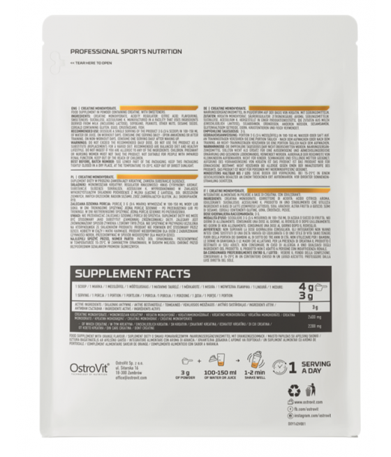 OstroVit Креатин моногидрат высококачественная пищевая добавка, источник креатина в форме моногидрата. Это препарат без добавления сахара, выпускаемый в порошковой форме и с различными вкусовыми добавками. Продукт предназначен спортсменам и физически активным людям, желающим дополнить свой рацион ценным компонентом.